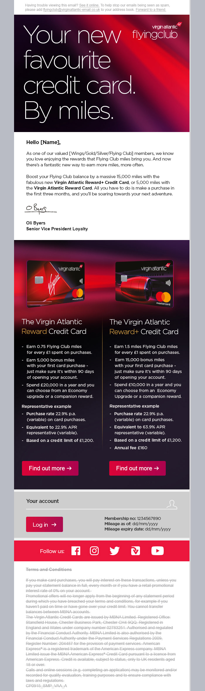 I wanted to create a really confident statement about the brand, positioning it as the future of air travel, using the new A350 aircraft, and putting the airline front of mind every time the card is used. I designed a card that felt futuristic, full of energy and innovation. Working with the internal team and the agency, Happy Ending, we crafted these beautiful pieces of art that became the face of the cards. I wanted the focus to be on the image, for the cards to be more than just a tool for financial transactions. I moved all the personalisation to the reverse to allow the front to really pop. To allow the card to stand out in the purse/wallet I added a purple and red, on brand, gradient to the edge of the cards - the first gradient to be added to a card in the UK at the time.