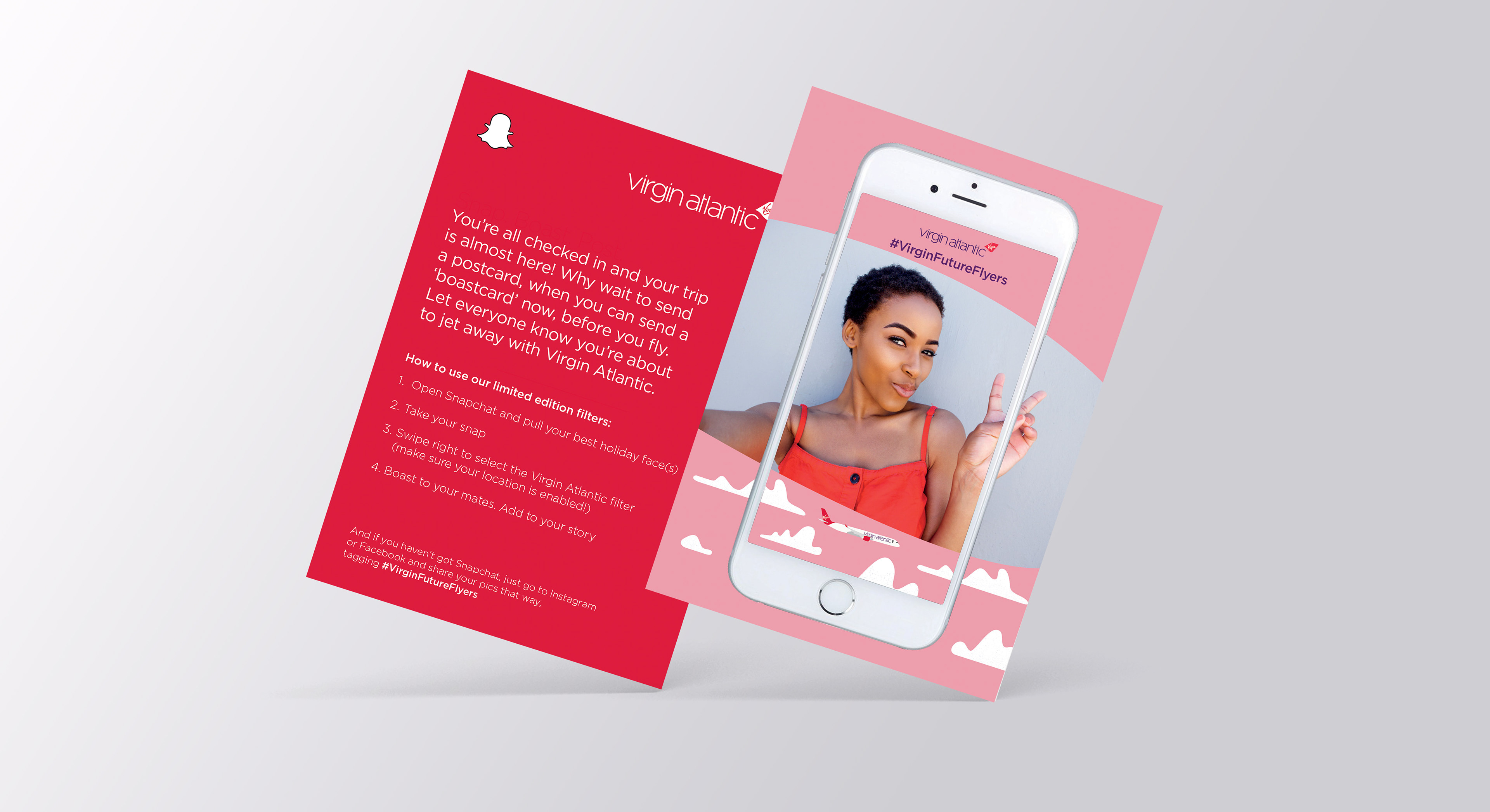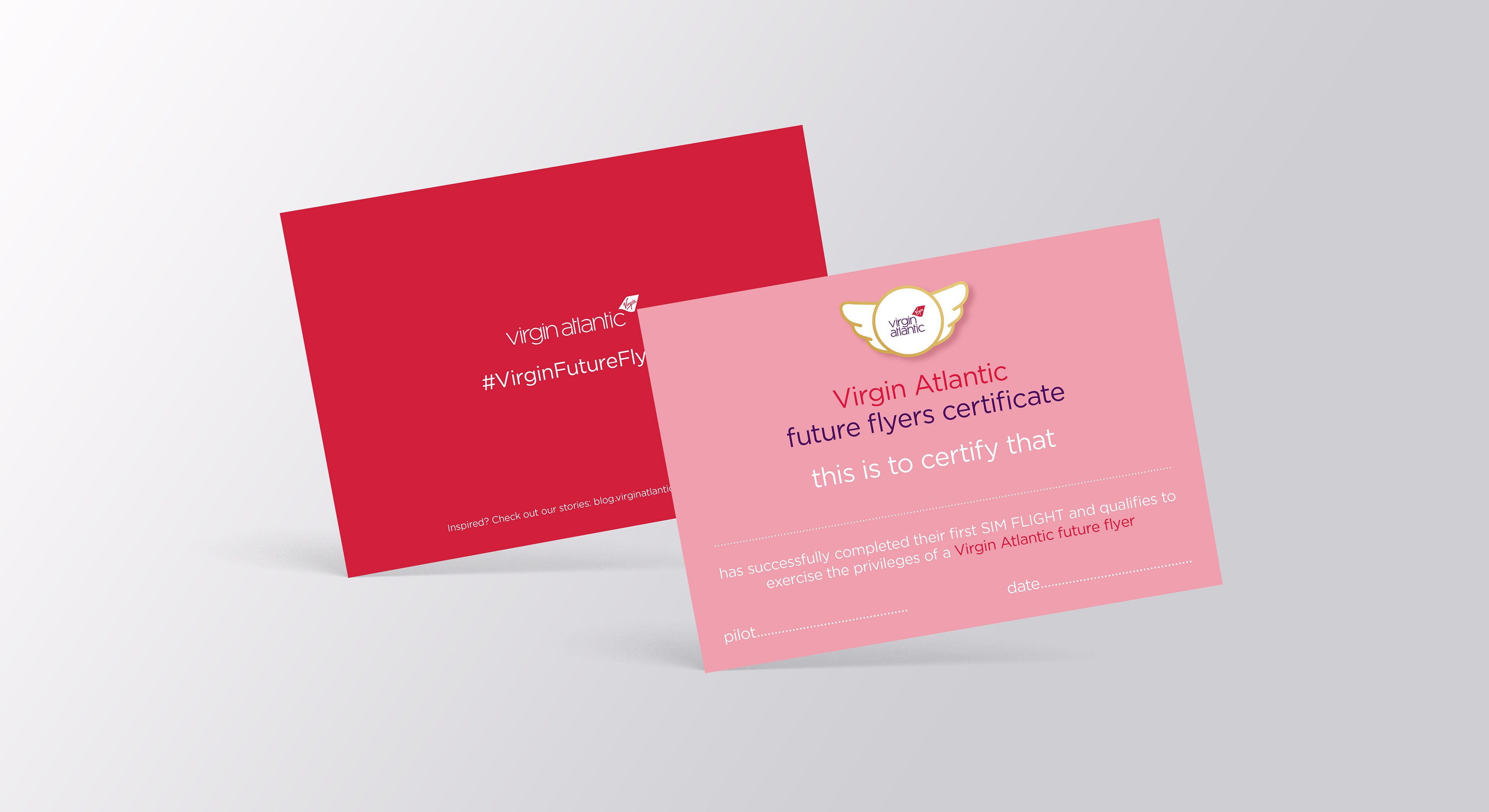 To encourage more young people to get into the aviation industry, Virgin Atlantic wanted to deliver a pop up flight deck experience at check in at LHR for one week during the school half term. I designed the concept and steered the craft and artwork with a design intern to produce a pin badge to give out to all participants. I took inspiration from the adult crew wings badge, but rounded the wings corners, shortened them and took out the detail, so it felt fun and more engaging for a younger audience. I then designed and artworked all the event pop up assets and giveaway's. Cloud floor vinyls, pink and red branded back drops and props, certificates and snapchat filters brought the creative to life in the check in space. The pop up experience had fantastic stand out in a predominantly white environment and received excellent reviews.