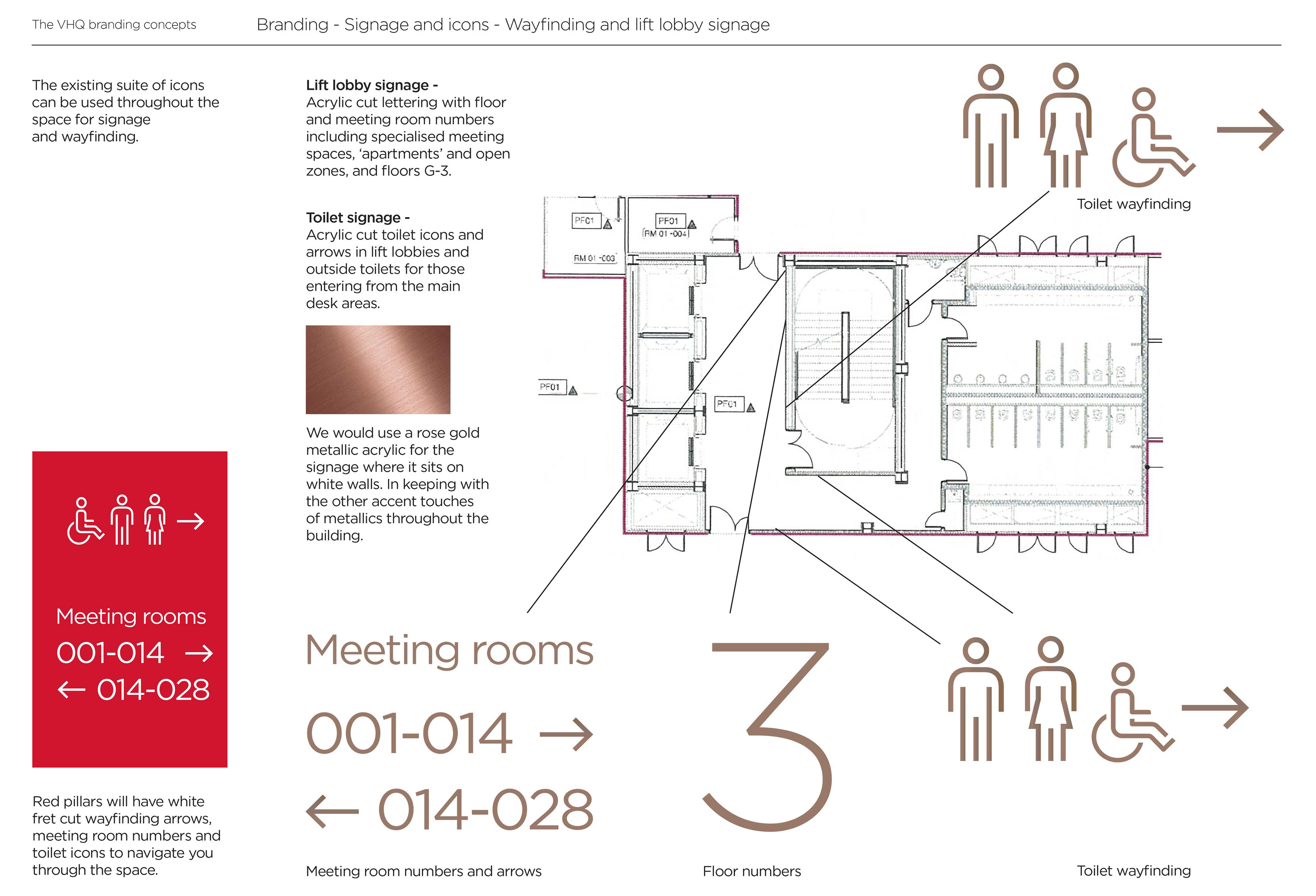 Virgin Atlantic and Virgin Holidays were co locating to a new build, head office. I was asked to brand and sign the space in keeping with the architecture and theme of the environment. Designed to be an open plan, flexible and hot desk environment with clean, industrial lines and accents of metallic, feature red staircases and break out areas. As the lead designer I worked with the interior designers and architects to understand the architectural drawings and the fabrics and materials being used and I presented my ideas to senior leadership members at the airline.